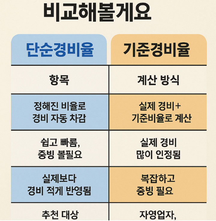 5. 단순경비율 vs 기준경비율 표로 비교해볼게요!